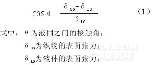 式中:r系毛细管r。降低δLS即能提高毛细管上升的液柱静压。因此,对纺织品只要能使之发生良好的润湿,就能自动发生良好的渗透作用。由此可见,作为良好的润湿和渗透作用的表面活性剂,应当使δLG及δLS明显下降。
