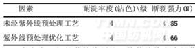 有上表可知经紫外线预处理的的纱线和未经紫外线预处理的纱线的耐洗牢度和断裂强力相差不大,说明紫外线辐射对纤维损伤不太明显。