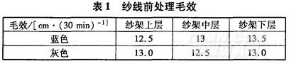 由表1可知,苎棉纱线前处理半成品的毛效为l0一15cm/30min,而同纱支纯棉纱线前处理半成品的毛效也在l0~15cm/30rain范围内,符合染色要求。