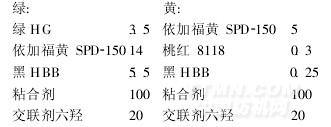 试验品种、前处理工艺处方和整理工艺处方不变,印花工艺处方做如下调整: