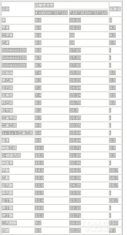 常用溶剂的极性顺序: 水(最大) > 甲酰胺> 乙腈> 甲醇> 乙醇> 丙醇> 丙酮> 二氧六环> 四氢呋喃> 甲乙酮> 正丁醇> 乙酸乙酯> 乙醚> 异丙醚> 二氯甲烷>氯仿>溴乙烷>苯>四氯化碳>二硫化碳>环己烷>己烷>煤油(最小)