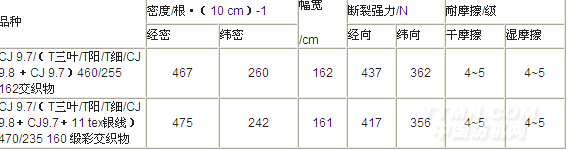 表5 交织坯布产品主要质量指标