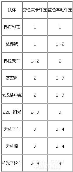 表3用变色灰卡和蓝色羊毛评定耐光色牢度的结果比较