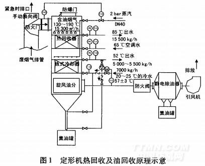 油烟在热回收器和板式冷却器中被冷却至60℃左右,为保持油脂温度不低于其熔点42℃,在水侧设温度调节装置,使进人热交换器中的油脂不至于凝结。