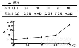 从图3可以看出,随着温度的升高,吸光度显著升高,当达到100℃时,吸光度达到最高值,考虑到实验中的实际操作,提取时确定方法为沸煮。