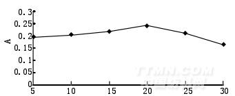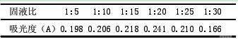从图5可以看出,随着固液比的增大,色素提取效果逐渐增强,当固液比达到1:20后,提取效果反而下降,故确定最佳固液比为1:20。