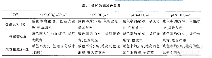 ( 3)锦纶对碱的稳定性较高。经检测,100%烧碱50留L,100℃处理2h,强力下降很少。因此,锦纶的染色物,只能进行碱减色。
