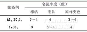 由表9可看出,羊毛条用Al2(SO4)3和FeSO4分别作为媒染剂进行染色的样品的皂洗牢度均较好。