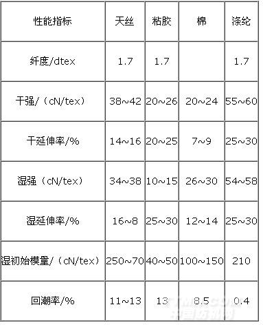 天丝作为一种新型人造纤维素纤维,国际人造纤维局在1989年将其命名为“YOCELL”。陆续开发了天丝G100、天丝A100、天丝LF等新型纤维素纤维。它来自树木内的纤维素,通过采用有机溶剂(NMMO)纺纱工艺,在物理作用下完成,故“天丝”被誉为“二十一世纪的绿色纤维”。“天丝”产品性能独特,兼具粘胶的“吸湿性”,棉的“舒适性”,涤纶的“强度”,真丝的“独特触感”、“柔软垂坠性”。【1】阿考迪斯《天丝技术手册》显示其性能对比如表1。