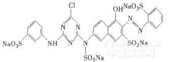 试剂 醚化剂EPTMAC(2, 3-环氧丙基三甲基氯化铵,东营市飒格曼石油科技开发有限公司);NaOH、无水乙醇(分析纯,国药集团化学试剂有限公司);5 mol/LHCl溶液、0. 01 mol/L AgNO3(自制);模拟活性橙K-GN染料废水(采用纯活性橙K-GN加入蒸馏水稀释至刻度配置而成,质量浓度100 mg/L)活性橙K-GN结构式: