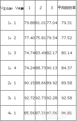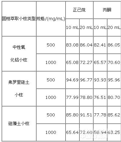 表5 正己烷和丙酮不同比例洗脱时的回收率 %
