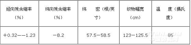 天丝纤维及300D(T400系列)纤维具有相同的特点,即吸湿快、弹性好,预缩过程中极易产生折皱。为了能够保持稳定的定型,又能体现其良好的弹性效果和独特的布面风格,我们对温度、车速、橡胶毯的挤压度进行反复的调整和试验,烧毛、预缩后尽量减少在布板上或车辆内的放置时间,通过技术攻关和多次试验,选择了适合于天丝/棉织物的预缩工艺,并进行严格控制,取得了良好的效果。预缩工艺如下:
