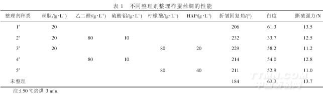 不同整理剂整理柞蚕丝绸的性能见表1.