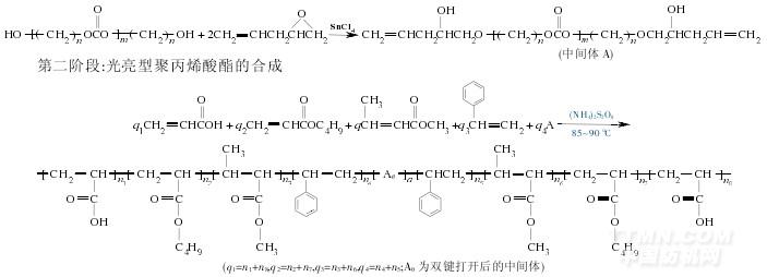 试剂:聚碳酸酯二元醇(PCDL),烯丙基缩水甘油醚(AGE),丙烯酸(AA),丙烯酸丁酯(BA),甲基丙烯酸甲酯(MMA),苯乙烯(St),四氯化锡(SnCl4),Span80,过硫酸铵[(NH4)2S2O8],十二烷基硫酸钠(SDS).