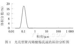 聚丙烯酸酯乳液稳定性高,流平性好,易于成膜,使用方便,形成的薄膜柔曲性能好且延伸性大,对织物具有较强的粘结力,且涂层不易脱落、掉色和变质.但聚丙烯酸酯乳胶膜具有冷脆热粘、弹性温度范围窄、光亮度不够理想的缺点.[1]