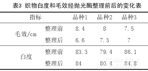 5.2 抛光整理对断裂强力(表2)、白度和毛效(表3)影响