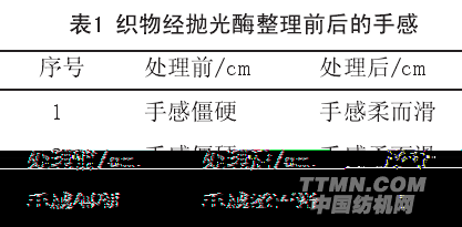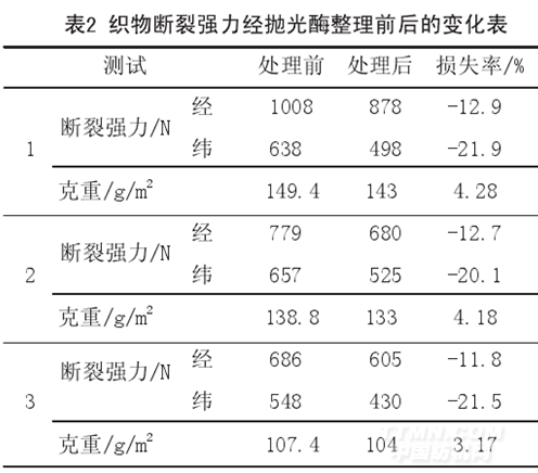 由表2可直接看出,织物经生物酶抛光后,克重与强力都有所降低。