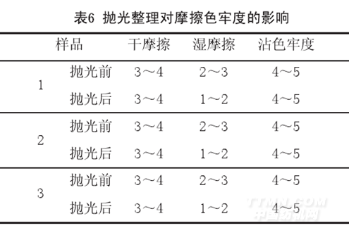 5.4 抛光整理对摩擦色牢度的影响(表6)