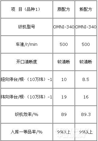 品种1:原配方浆料干重价格:15.15元/kg。百米用浆成本48.10元(15.15×14.7%×21.6=48.10元);新配方浆料干重单价10.98元/kg,百米用浆成本36.29元(10.98×15.3%×21.6=36.29元)。新配方百米用浆成本比原配方百米用浆成本降低11.81元,百米用浆成本降低24.55%较明显。