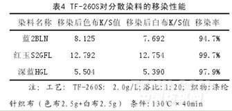 TF-260S能显著增加染料的高温迁移,可使色深部分的染料解吸并重新均匀上染,有利于最终获得均匀的染色效果。