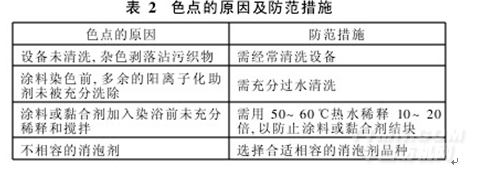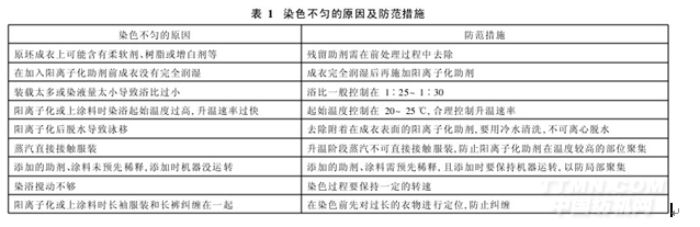前处理及染色过程中,由于工艺处方或操作不当,会引起染色不匀,其原因及防范措施见表1。