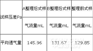 则:A整理后的试样透气率=145.96/20*167=1235.466mm/s;