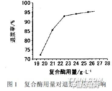 由图1、2 知,改变复合酶浓度,复合酶的催化作用随着复合酶浓度的增加,退浆率也随之提高。当复合酶浓