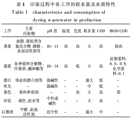 印染过程中各工序的排水情况及水质特性如表1所示[8]。