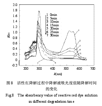 3.3初始浓度200mg/L印染废水在外加电压40kV、放电时间20min、电极间距8mm、通入空气流量16L/h条件下,与絮凝剂PAC相互协同作用可达到96%的脱色率、63%的COD去除率.