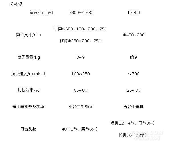 表9-4-1 尘笼式摩擦纺纱机的技术特征