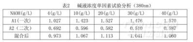 PH为14时, NaOH的浓度为40g/L,浓度较大,因此对NaOH浓度做单因素分析。