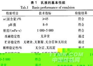涂料印花粘合剂乳液的基本性能如表1所示。