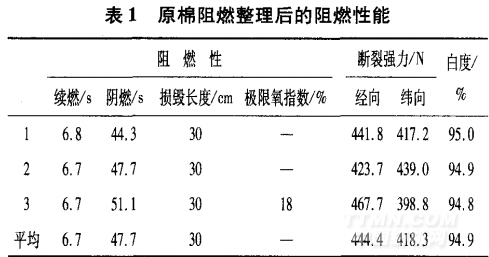 (2)PyrovatexCP后整理工艺。整理后产品的阻燃性能较好,耐久性能好,可耐家庭洗涤50次甚至达到200次以上。缺点是整理工艺损伤纤维的强力 。