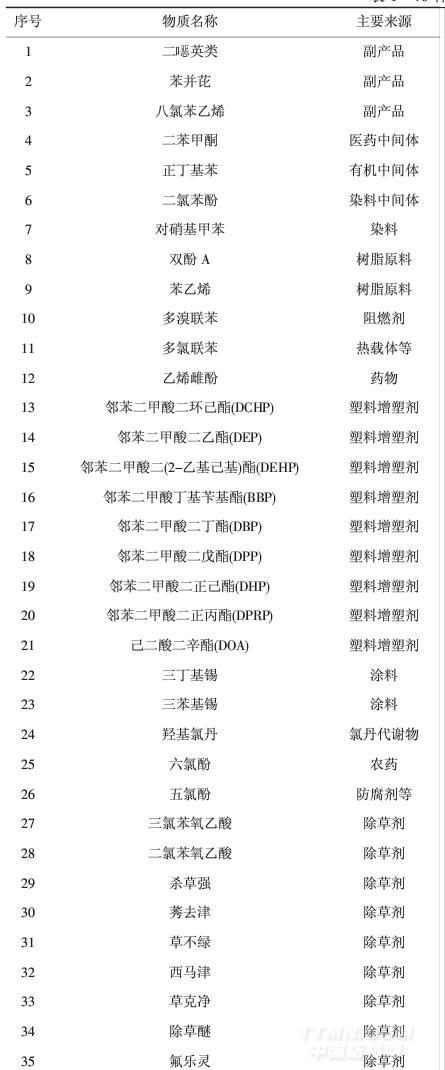 表1所列出的环境激素中,包括被称为“世纪三毒”的二英、DDT和多氯联苯.其中除草剂、杀虫剂、杀菌剂等农药或其代谢物比例较大,约占70种环境激素的2/3.