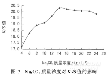 2. 2. 3 碱剂Na2CO3质量浓度对K/S值的影响
