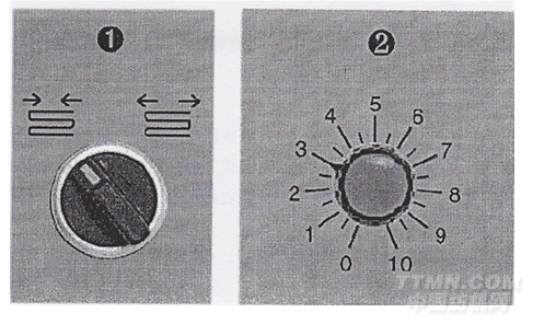 在正常型号的机器中,调节则通过旋转手轮①来完成。