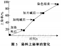 由图5可看出.低温染色工艺上染率增加较为平缓.这有利于染料的匀染