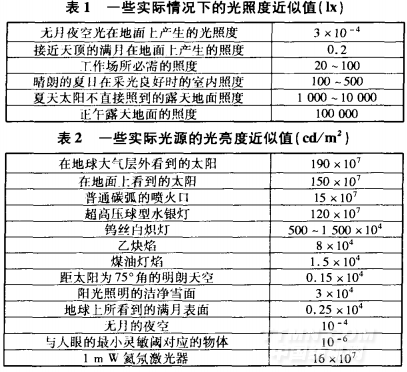 具有感光性能的视细胞相当于照相胶片上具有感光性能的卤化银(Agcl、AgBr、A )微粒。视细胞包括锥体细胞(cone)和杆体细胞(rod)两种视觉感光细胞,它们所含的感光物质不同,所以执行的视觉功能也不同。锥体细胞的感光灵敏度低,在亮度为3 cd/m 以上的光亮条件下起作用,能够分辨颜色和物体的细节,称为锥体视觉或明视觉(photopic vision);杆体细胞只能在亮度为0.001 cd/m 以下的黑暗条件下起作用,其感光灵敏度高,但仅能感知明暗,不能分辨颜色和物体的细节,称为杆体视觉或暗视觉(scotopic vision)。如果亮度介于明视觉与暗视觉所对应的亮度水平之间,视网膜中的锥体细胞和杆体细胞将同时起作用,称为中间视觉或介视觉(mesopic vision)。锥体细胞和杆体细胞分别是因其形状为圆锥状和棒状而命名的。在锥体细胞中又含有分别对红、绿、蓝光有响应的三种细胞,其数量之比大约为32:16:1。因此,可以形象地说,人眼是由高灵敏度的黑白胶片和中等灵敏度的彩色胶片组成的。