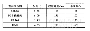 表1各表面活性剂的发泡指标对比