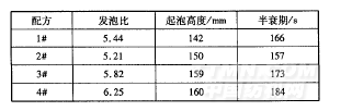注:发泡比是指发泡前一定体积的液体质量对发泡后相l司