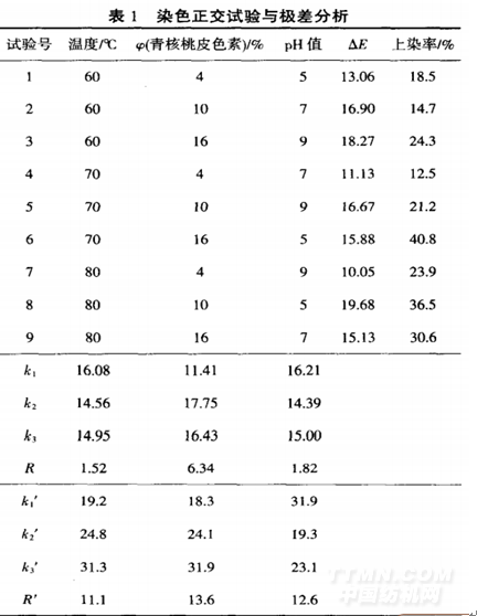 由正交试验及单因素分析得出青核桃皮色素对柞蚕丝织物直接染色的最佳工艺条件为:pH值4,r苛核桃皮色素)=16%,70℃.