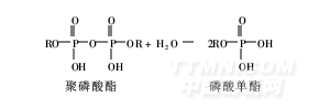 在生成物中,聚磷酸酯在一定条件下可以水解为相应的单酯,单酯盐含有2个亲水基团,而双酯盐只含有1个亲水基团,故单酯盐比双酯盐的渗透性更好[3]。其水解反应式为: