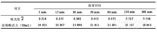 表7超声波活化后淀粉酶活力与放置时间的关系