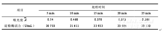 表5处理时间对超声波预处理淀粉酶活力的影响