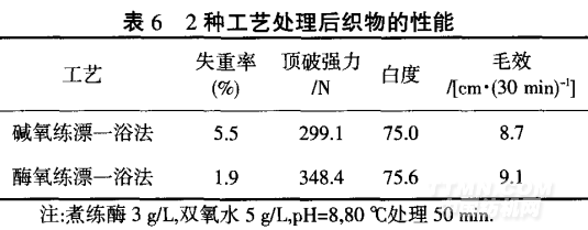 2.2碱氧练漂一浴法与酶氧练漂一浴法对比