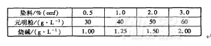表1染料质置分数与元明粉、烧碱质虽浓度的关系