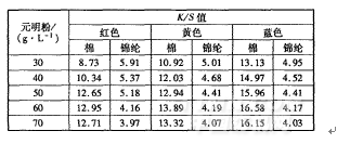 表2元明粉质量浓度对染色K/S值的影响