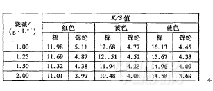 表3烧碱质量浓度对染色K/S值的影响