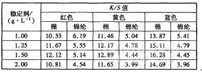 表4稳定剂DomapalELD用量对染色K/S值的影响