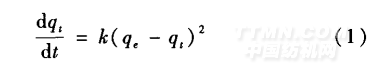 准二级动力学模型基于吸附速率由纤维表面未被占有的吸附空位数目的平方决定的假设 ,其公式为